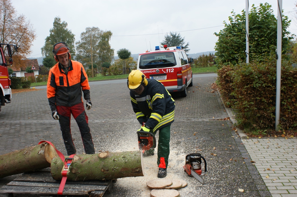 Hier findet man Bilder von der Ausbildungseinheit "Umgang mit der Motorkettensäge"